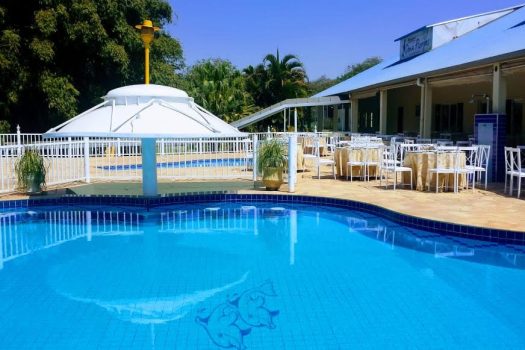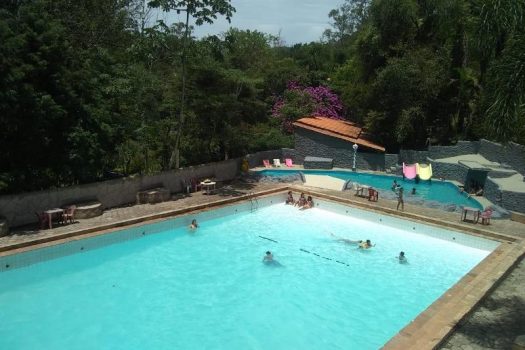 Uma piscina 3 x 4 m e uma 4 x 9 m. Um campo de futebol gramado com 50 x 25 m. Dois campos de vôlei gramados (adulto e infantil);
