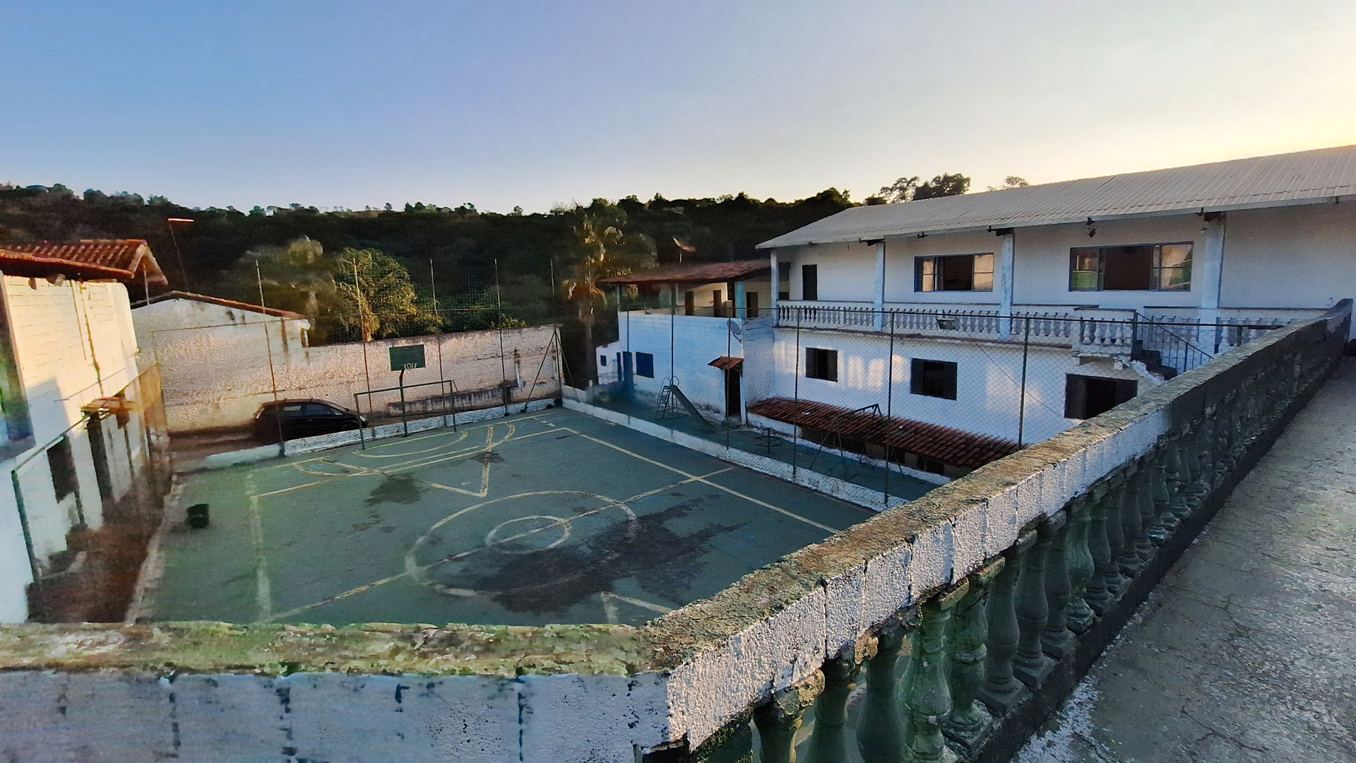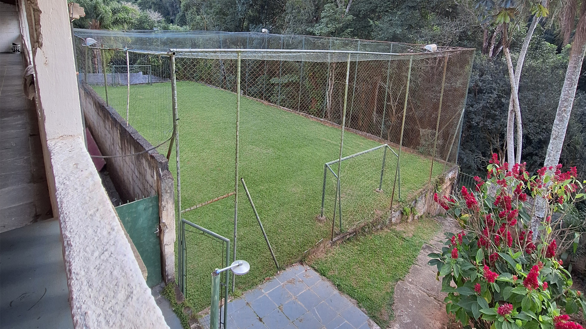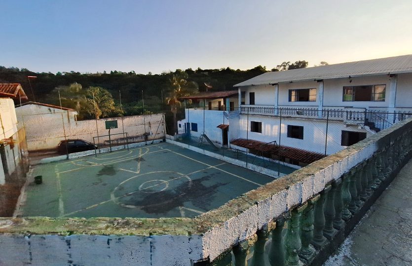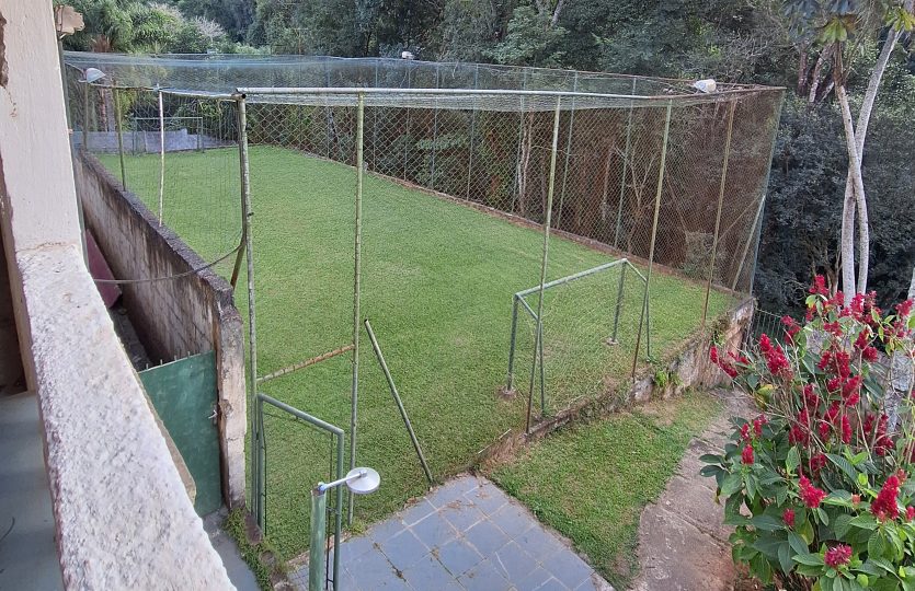 Quadra poliesportiva e mini campo gramado.