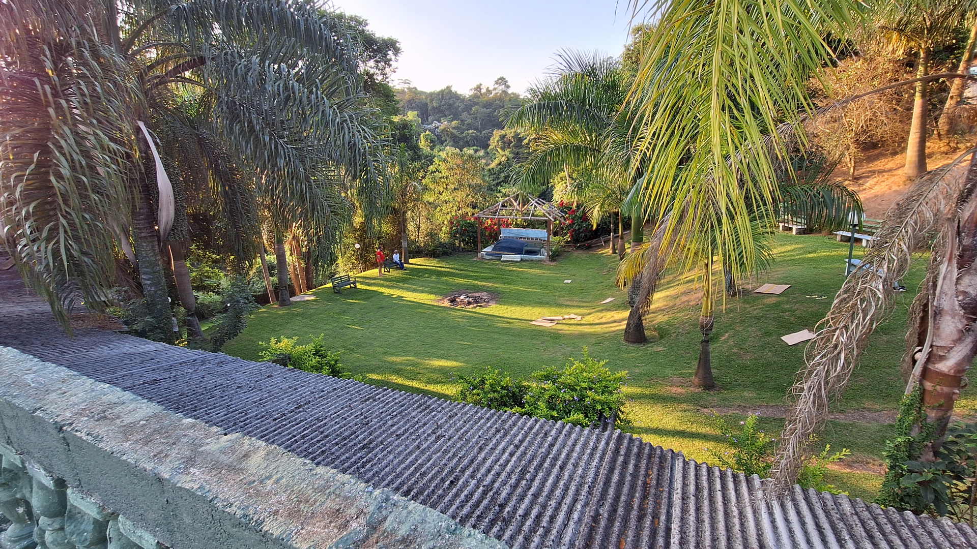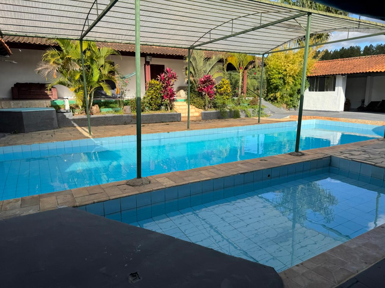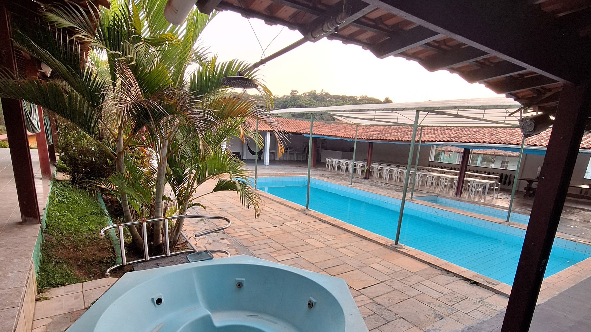 Área coberta ampla para grandes reuniões.