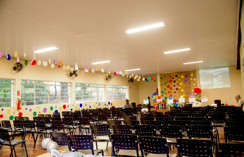 Descrição: Salão de culto confortável e bem arejado (com 120 lugares, quadra coberta pode ser usada para eventos com 500 pessoas ou mais, mas as cadeiras precisam ser alugadas)