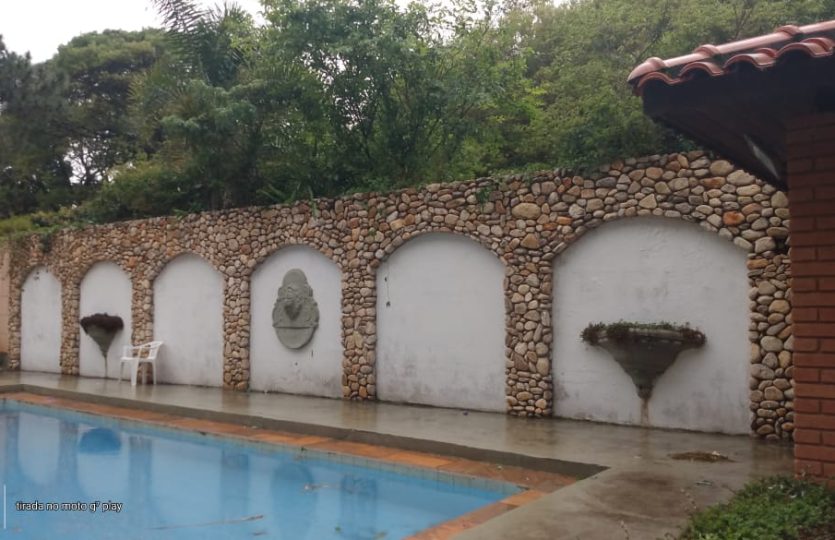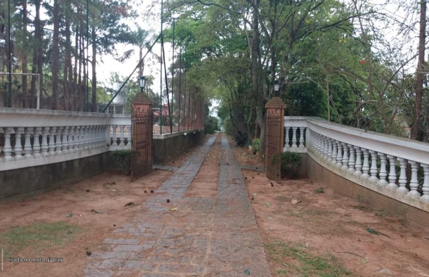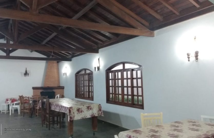 Salão de festas e eventos / palestras com mesas e cadeiras – Lareira interna – Ampla varanda – 2 casas – total 7 quartos avarandados sendo 3 suites – 2 cozinhas – espaço Churrasco com forno a lenha – Piscina – Campo de Futebol com opção de Voley – Capela Ecumênica -3 mesas de Jogos . Estacionamento interno para 25 veículos. Pomar