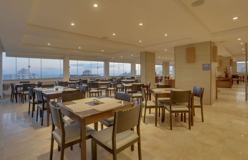 Descrição: Nosso Restaurante Maricota está localizado no terraço do hotel e acomoda até 150 pessoas simultaneamente. Nosso serviço de café da manhã, almoço e jantar é buffet. E também temos o opcional com café da tarde.