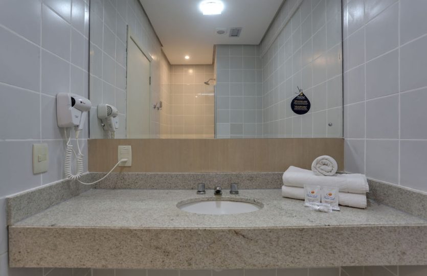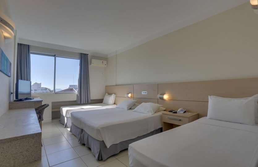 Descrição: O Hotel Porto Sol Ingleses possui 60 apartamentos, suíte com decoração moderna e clean, os 25 metros quadrados da suíte contam com cama de casal box pillow top e solteiro auxiliares, acomodando até 04 pessoas. Possui TV, frigobar, ar condicionado, secador de cabelo e cofre.