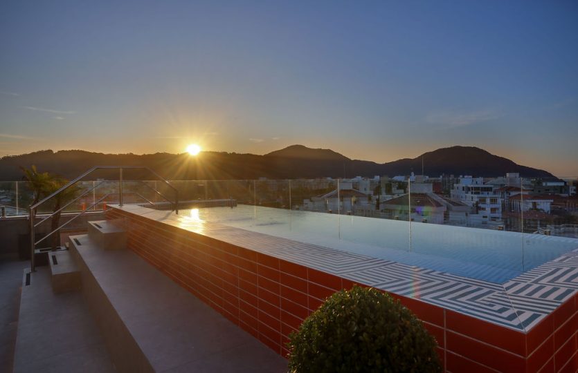 Descrição: Contamos com duas piscinas, uma natural no térreo e outra piscina térmica de borda infinita no terraço junto a um solário. Possuímos quadra de tênis, quadra de beach tênis e vôlei de praia, sala de tv, jardim e fica há 3 minutos da Praia de Ingleses.