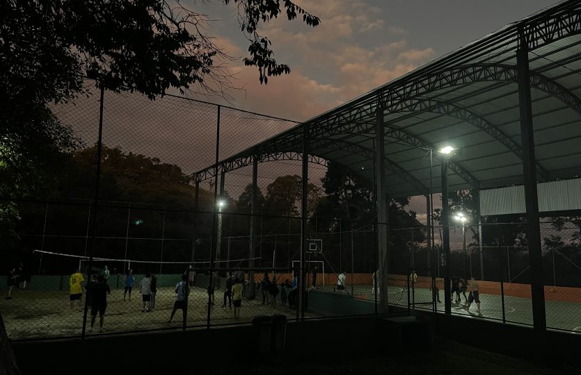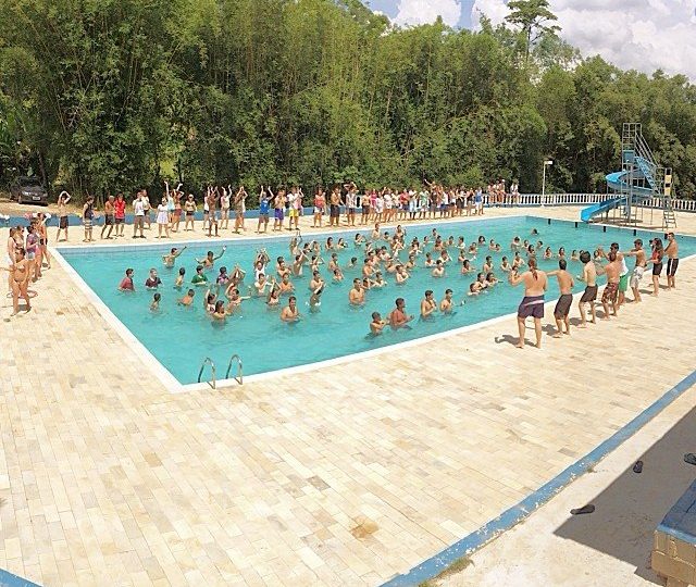 Descrição: Piscina semi olimpica, quadra esportiva coberta, campo de futebol, quadra de areia