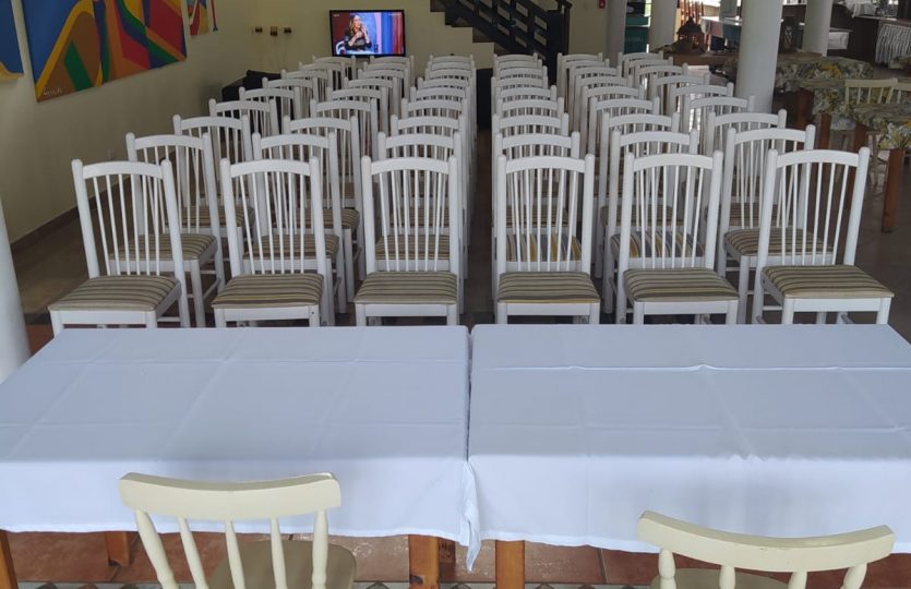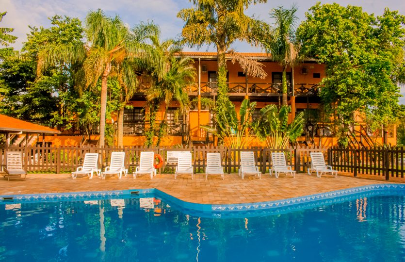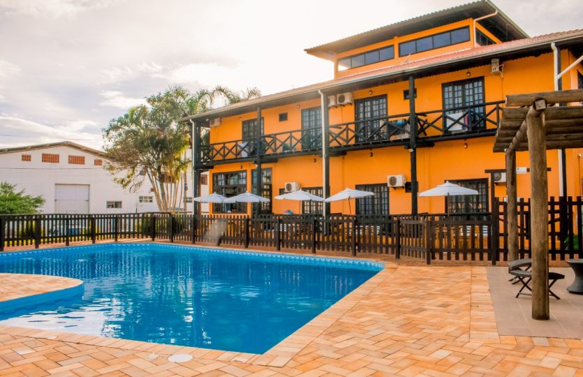 A pousada tem ampla piscina , sala de TV, super espaçosa !