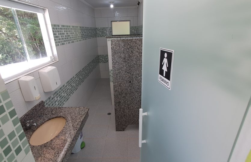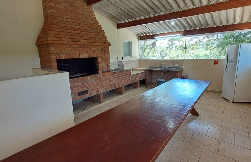 gourmet com churrasqueira e banheiros masculino e feminino. O espaço pode ser utilizado como salão
