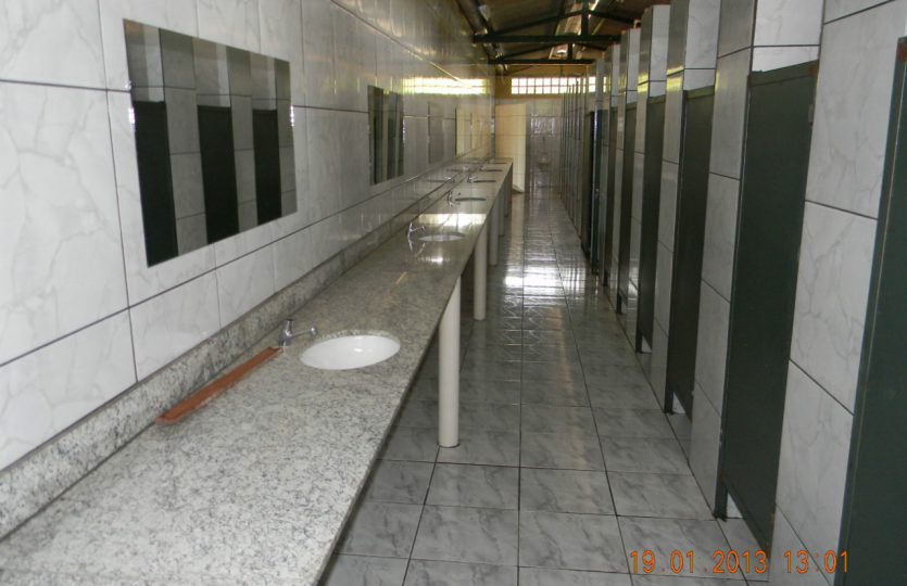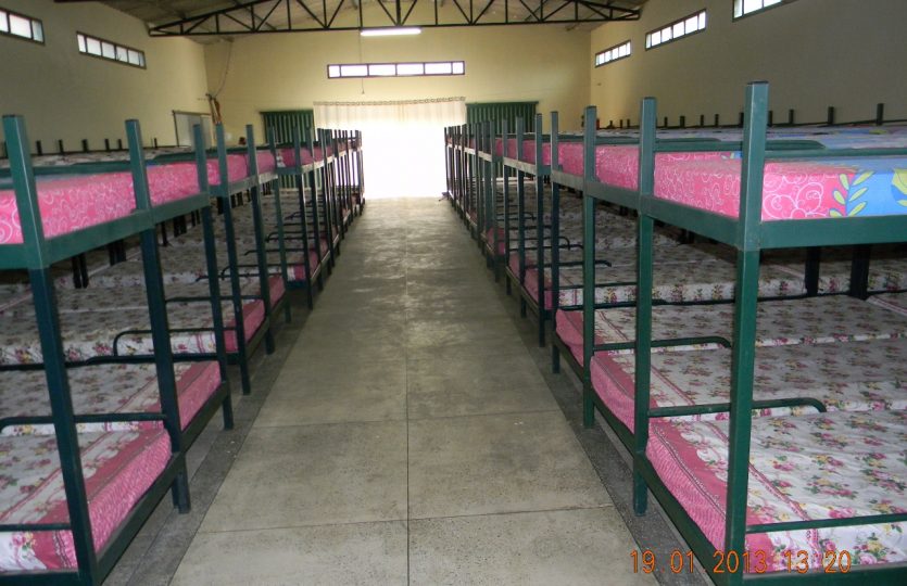 Alojamentos femininos e masculinos bem assistidos por banheiros, com 180 camas em cada um.