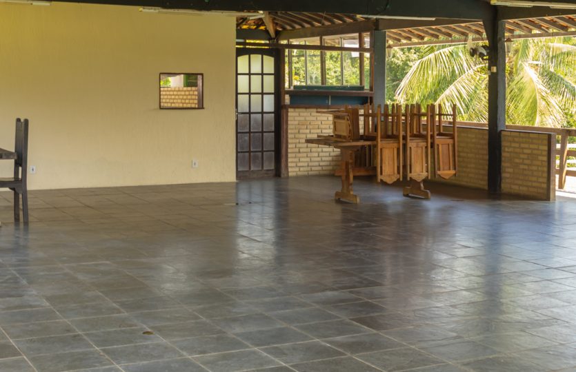 100/110 pessoas; 15 mesas, 60 cadeiras;