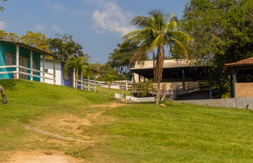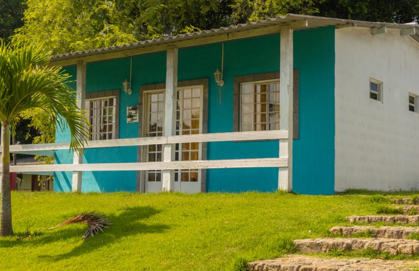 Possuímos 3 dormitórios coletivos com beliches – Azul e lilás com 18 beliches cada um e amarelo com 11 beliches – e um chalé com uma suíte e dois quartos de casal. Totalizando 100 (cem) lugares.